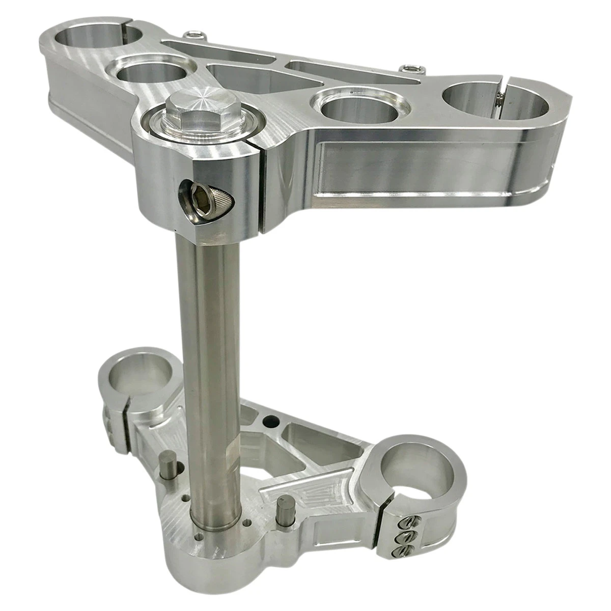 • Increased clamping area of 0.25″ on the bottom tree reduces lateral and torsional fork flex, which increases the rigidity and stability of the front end