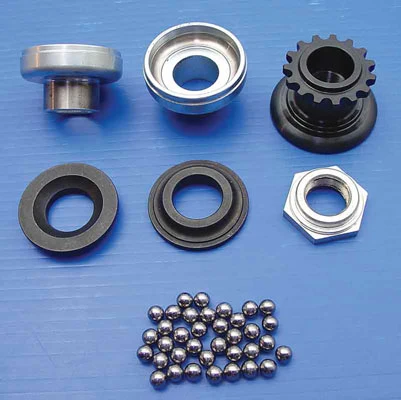 • Kit includes zinc plated neck cups, ball bearings, upper and lower races, black fork cone nut with dust cover pressed on and a parkerized top nut
